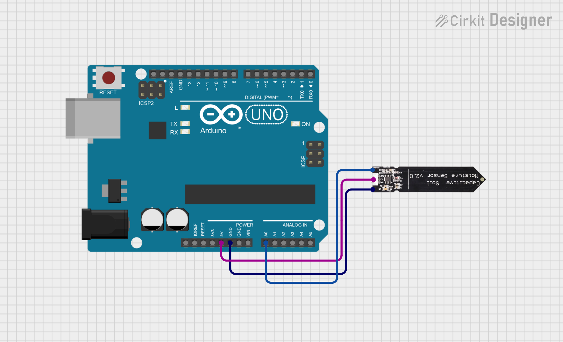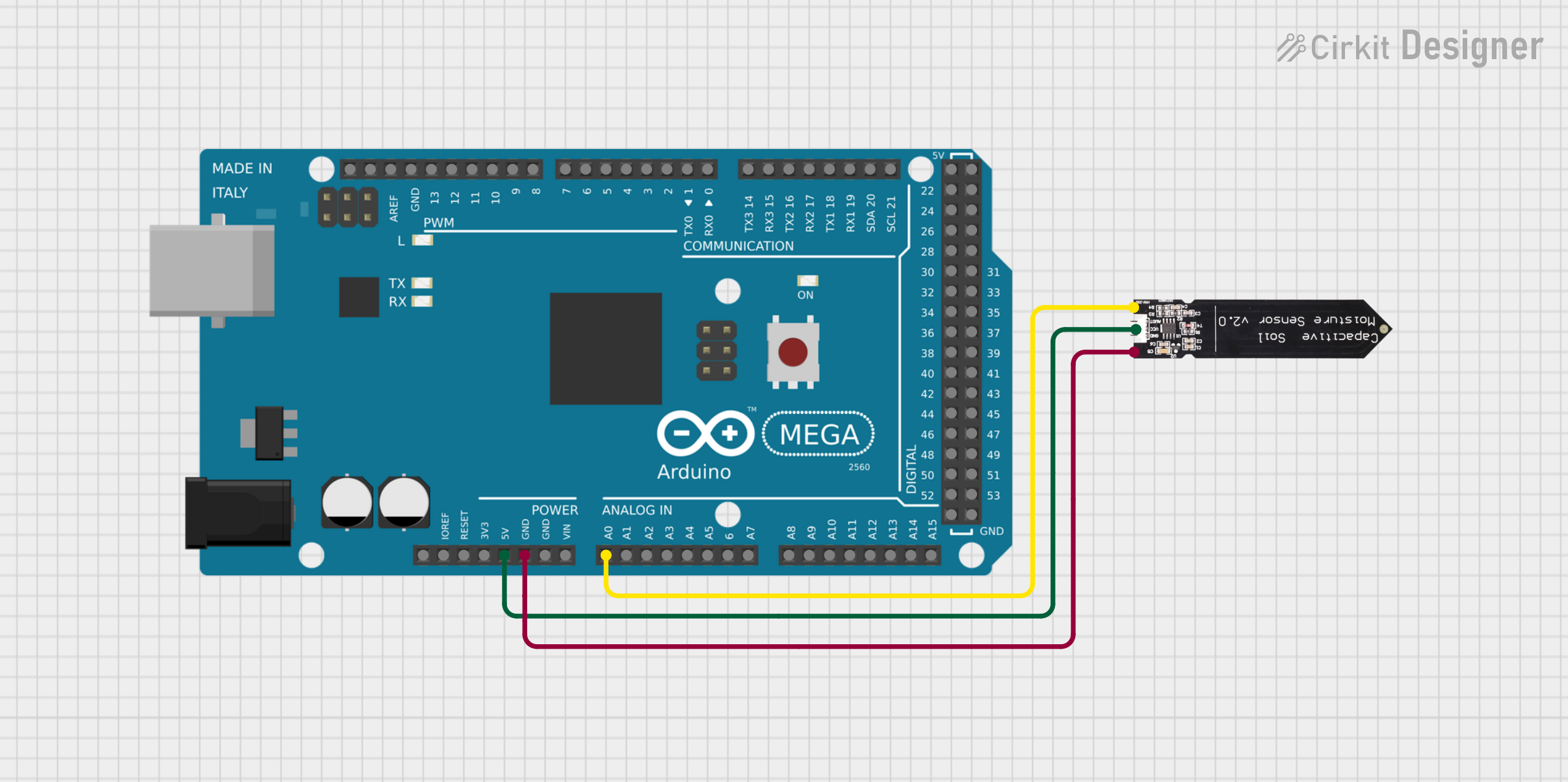 | AOUT / SIG (kuning) | Analog A0–A15 (mis. A0) | Baca nilai kelembapan |